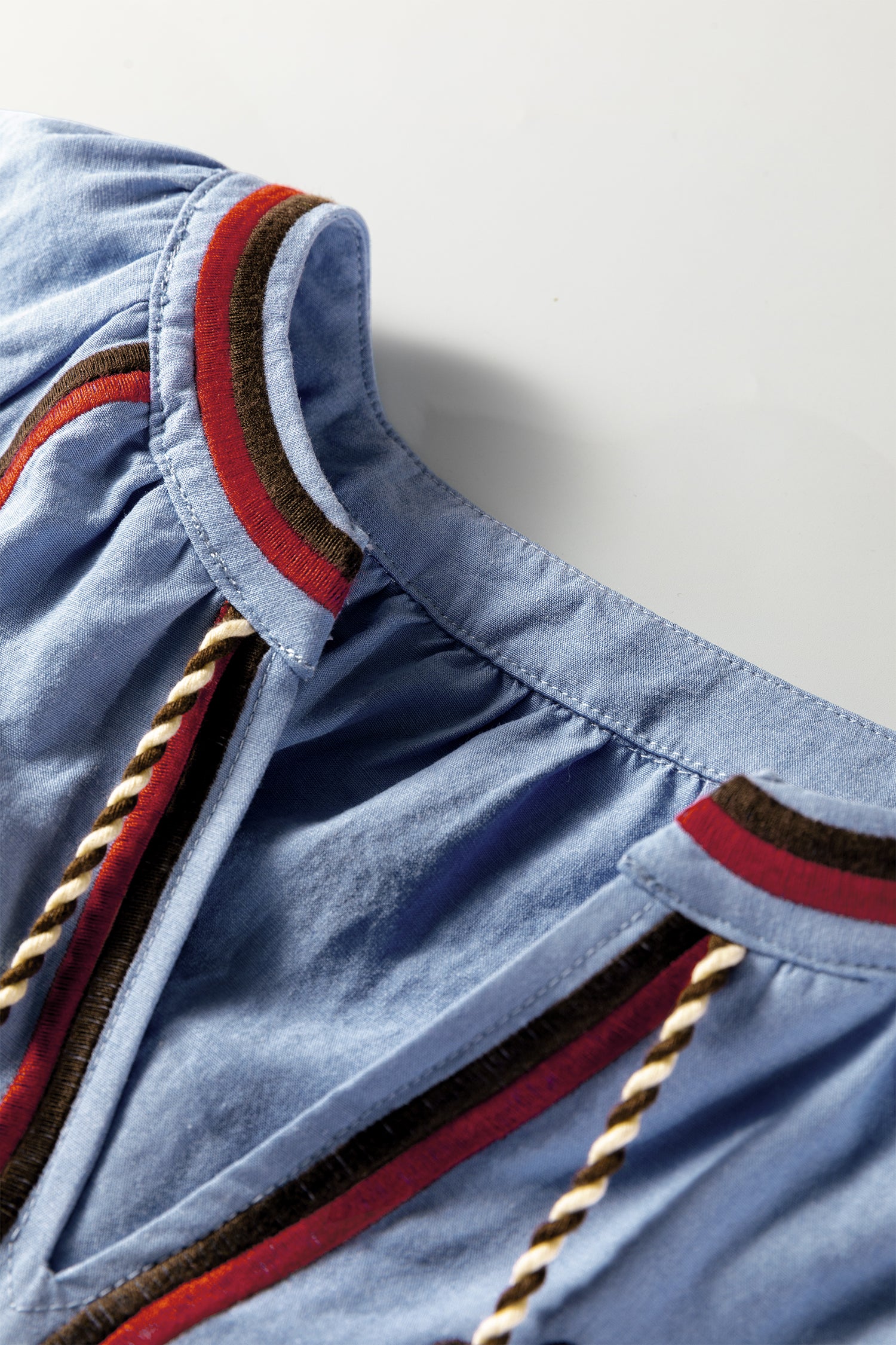 Tassel tie detailing provides playful movement and bohemian-inspired flair.