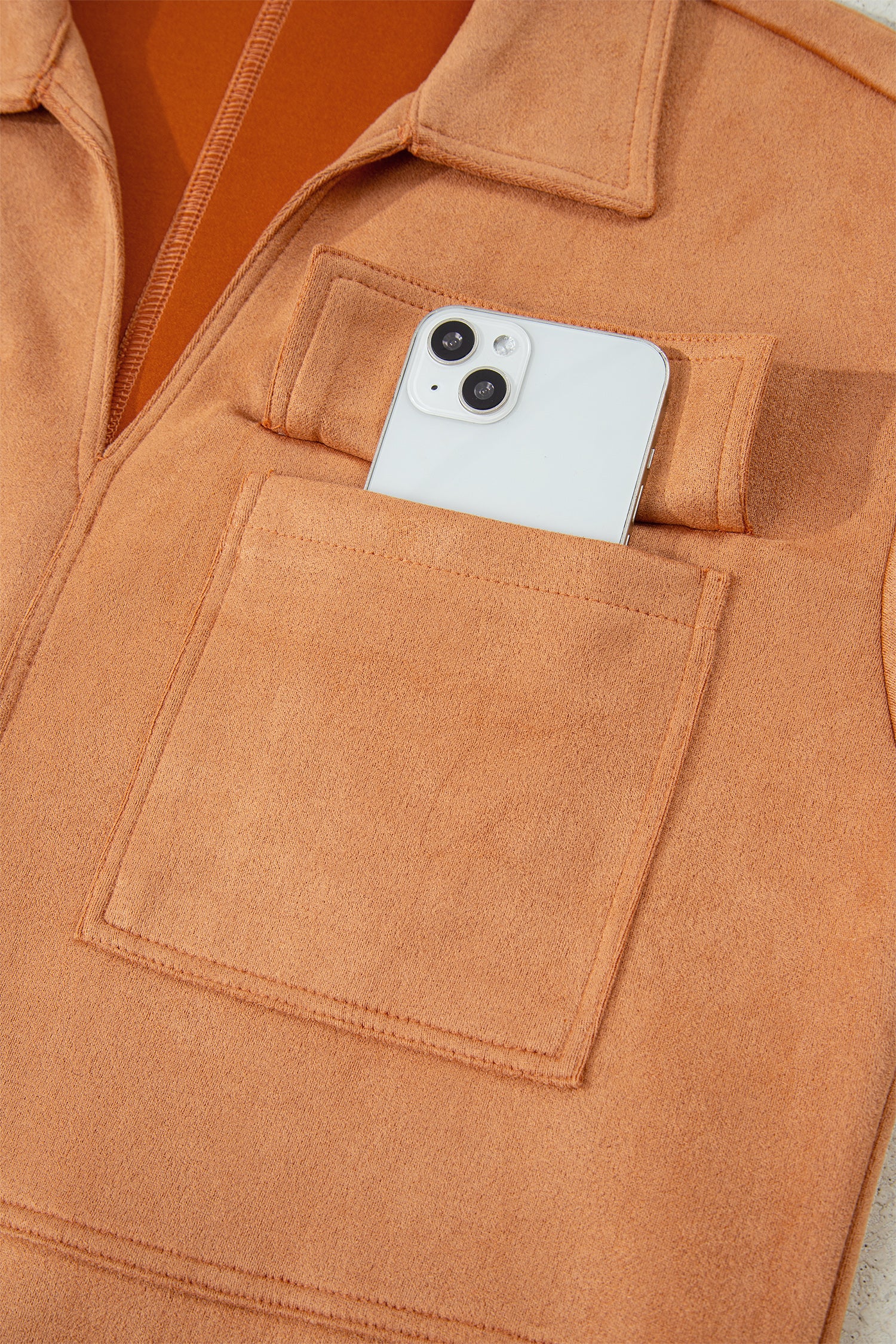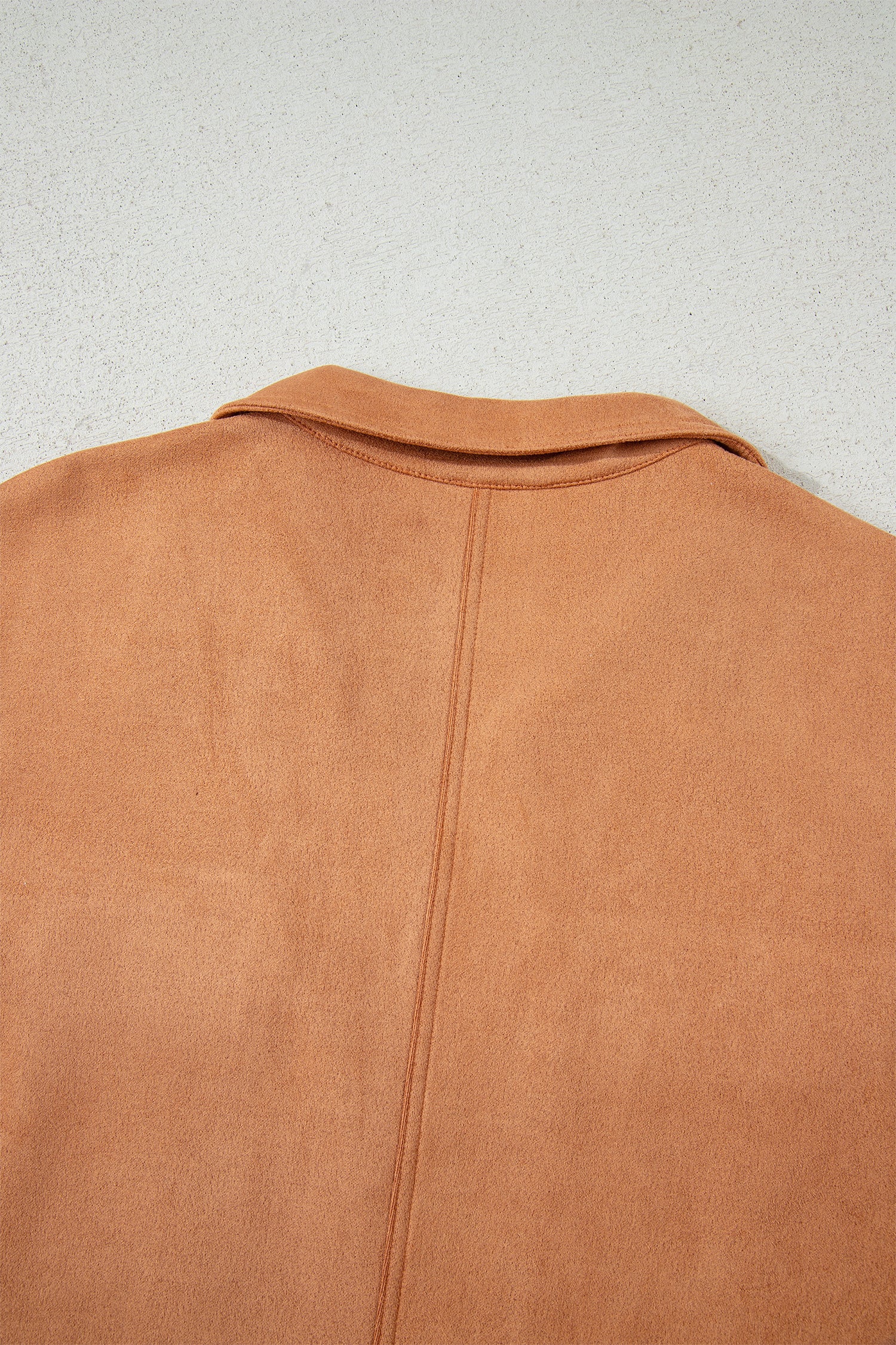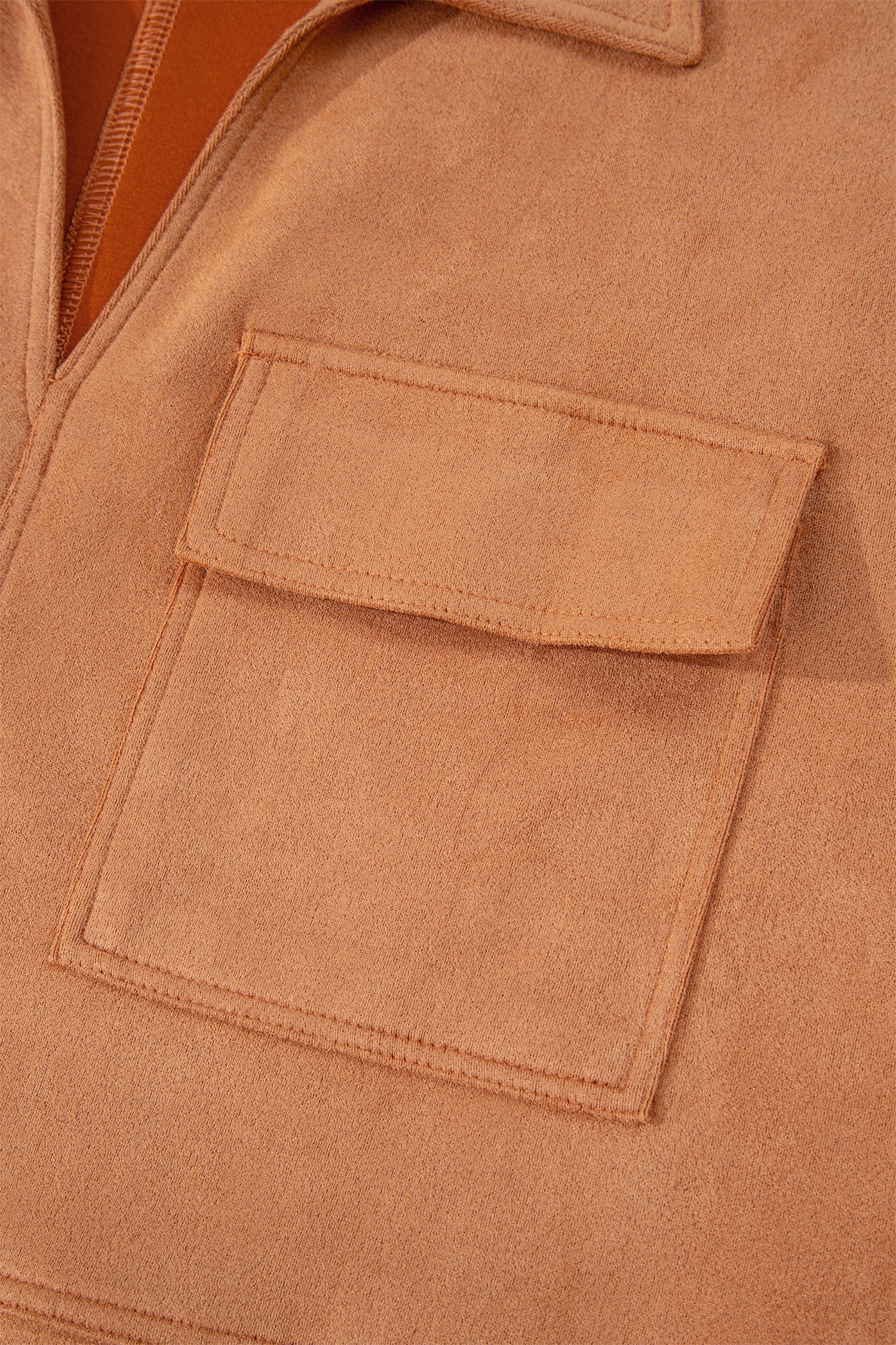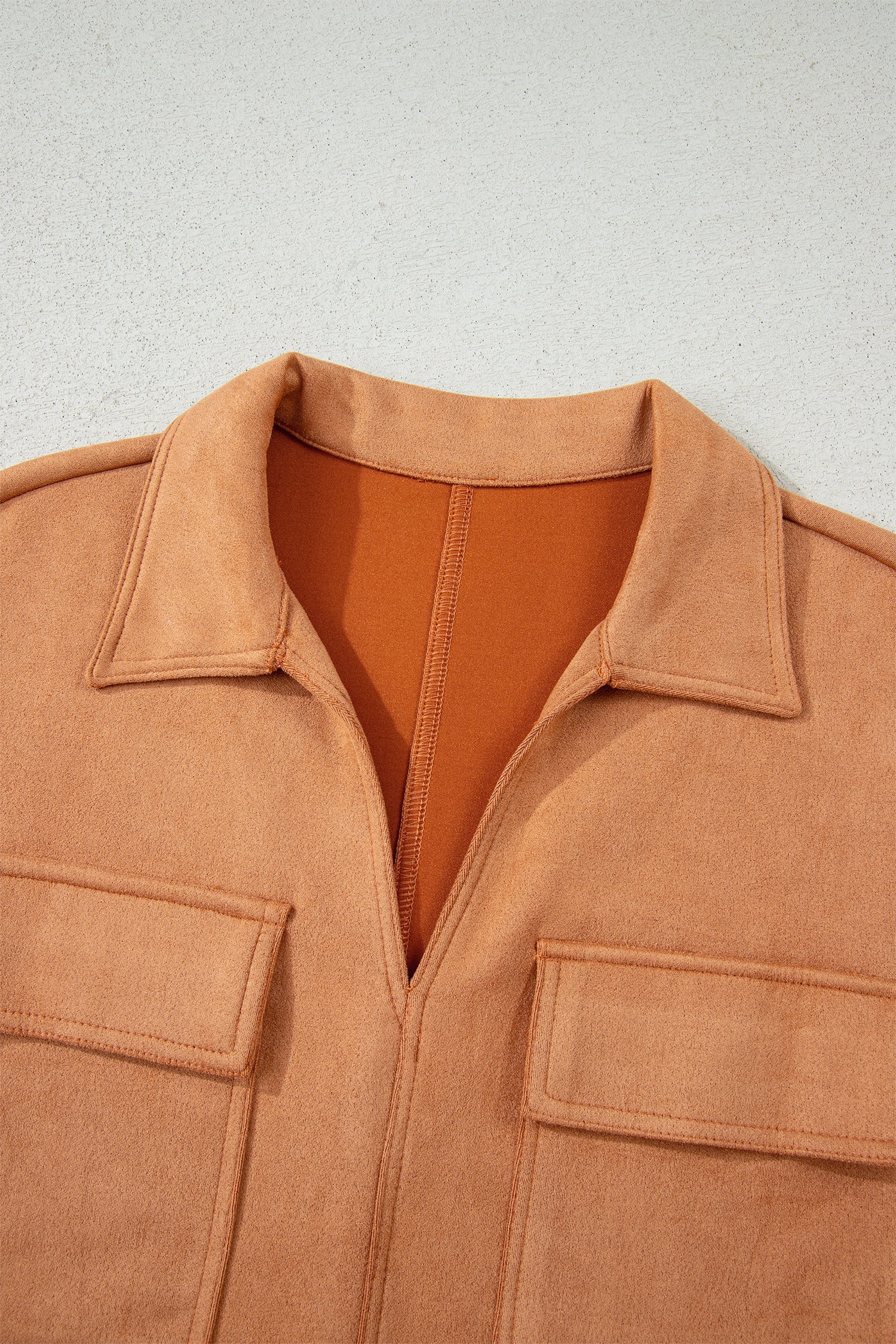 Thai Curry Collared V Neck Faux Suede Short Sleeve Shift Mini Dress